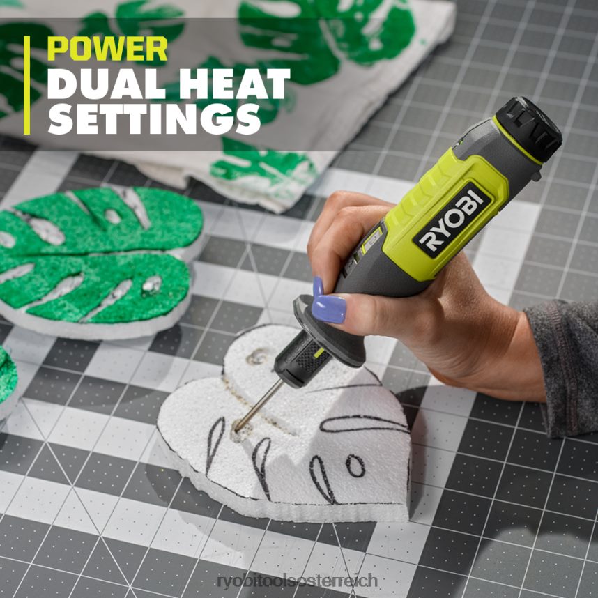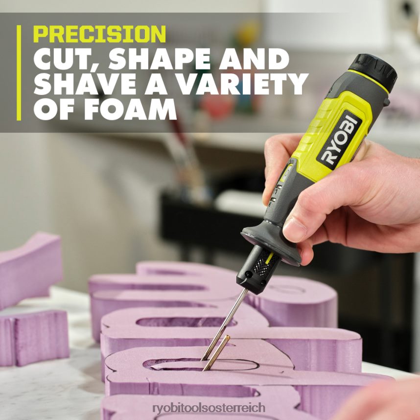 ryobi stellt das USB-Lithium-Schaumschneider-Kit vor. Dieser Schaumstoffschneider schneidet, formt und rasiert eine Vielzahl von Schaumstoffen. Durch das schnelle Aufheizen in weniger als 2 Minuten ist dieses Gerät einsatzbereit, wenn Sie es sind. Die zwei Heizstufen ermöglichen Ihnen eine präzise Temperaturregelung, die Sie je nach Ihren Projektanforderungen anpassen können. Dieses Kit enthält 3 verschiedene Schaumstoff-Schneidespitzen für eine Vielzahl von Anwendungen. Die Heißdrahtspitze ist ideal zum Schnitzen, Schneiden und Formen Ihres Schaums. Dieser Tipp eignet sich besonders gut für Polsterschaum beim Upcycling von Möbeln oder für das Formen von Styropor für ein DIY-Projekt. Die Präzisionsgravurspitze verleiht Ihren Designs Textur oder Details. Die Lochspitze ist ideal zum Ausschneiden verschiedener Formen oder zum Graben von Löchern in Styropor. Eliminieren Sie Ausfallzeiten durch den bequemen, werkzeuglosen Spitzenwechsel. Dieser Schaumstoffschneider ist mit dem Ryobi 2-teilig kompatibel.Schaumstoffschneider-Spitzensatz (A81FC07) und Nichrom-Ersatzdraht (A81FC06) (separat erhältlich). Kombinieren Sie den USB-Lithium-Schaumschneider mit der Ryobi Hobby Station (RHS01) für ultimative Kontrolle und Präzision (separat erhältlich). Dieses Produkt verfügt über eine LED-Anzeige, die signalisiert, wann das Werkzeug aufheizt, und den Ladezustand des Akkus anzeigt. Das Beste daran ist, dass es Teil des Ryobi USB-Lithium-Werkzeugsystems ist, das kompakte, tragbare und wiederaufladbare Lösungen für kabellose Stromversorgung und Produktivität bietet. Für das USB-Lithium-Schaumschneider-Kit gilt die 2-jährige Herstellergarantie von Ryobi. Es umfasst einen USB-Lithium-2-Ah-Akku, Nichromdraht, Heißdrahtspitze, Präzisionsgravurspitze, Bohrspitze, Ständer, USB-Kabel und Bedienungsanleitungen und ist in einem verpackt Hartschalenkoffer für Organisation und Komfort.